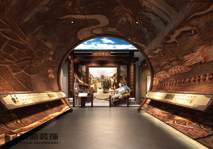 铜雕隧道用蜡像模拟驿站的场景